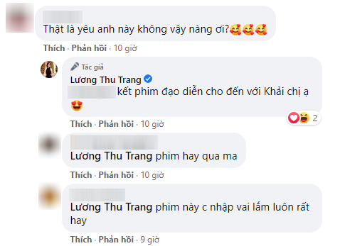 Trước suy đoán của của khán giả, Lương Thu Trang đã trả lời: 'Kết phim đạo diễn cho đến với Khải'.