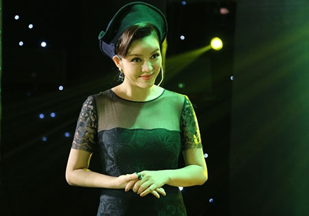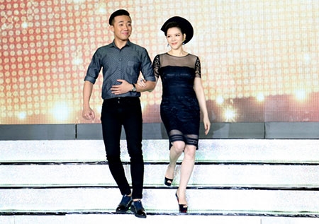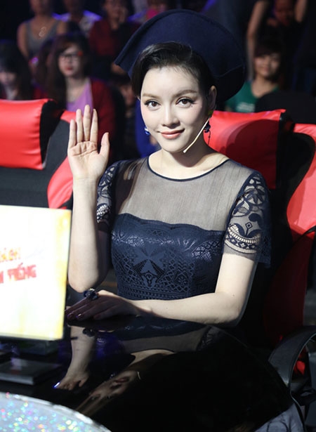Lý Nhã Kỳ diện trang phục thanh lịch, đội mũ kiểu cổ điển làm giám khảo trong đêm bán kết chương trình "Thử thách người nổi tiếng". Cô được Trấn Thành tháp tùng ra sân khấu. |