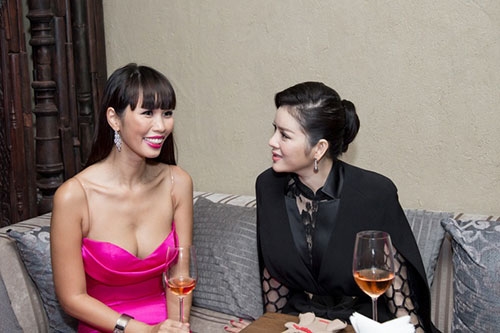 Lý Nhã Kỳ chọn một góc khuất để ngồi một mình, trong khi Hà Anh bận rộn tiếp khách. Cả hai quen nhau từ khi Lý Nhã Kỳ mời Hà Anh làm MC show thời trang Haute Couture của cô. Cựu Đại sứ Du lịch đánh giá Hà Anh là một cô gái có cá tính, thông minh. |