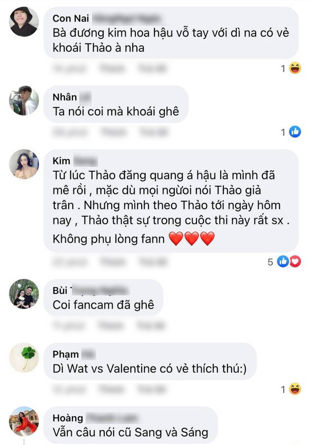 Trước chia sẻ này, nhiều fan sắc đẹp lên tiếng bênh vực Ngọc Thảo. Theo quan sát nhiều năm, Miss Grand International là cuộc thi đề cao cá tính thí sinh. Là đấu trường nhan sắc mà ở đó, mỗi đại diện sẽ phải cạnh tranh để trưng trổ nét riêng độc đáo của mình. Minh chứng gần đây nhất, trong Top 5 Hoa hậu Hòa bình Thái Lan 2020, một á hậu đã in-top nhờ show diễn khả năng trình diễn "lố" đưa màn catwalk "lốc xoáy" trở thành trend sau cuộc thi.