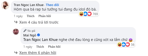 Đáp lại Mai Ngô, Lan Khuê cũng vui vẻ nhắc đến chuyện Á hậu của Miss Grand Vietnam vừa trình diễn trong cuộc thi Hoa hậu do cô tổ chức. Điều này cho thấy mối quan hệ của Lan Khuê - Mai Ngô vẫn rất tốt đẹp.