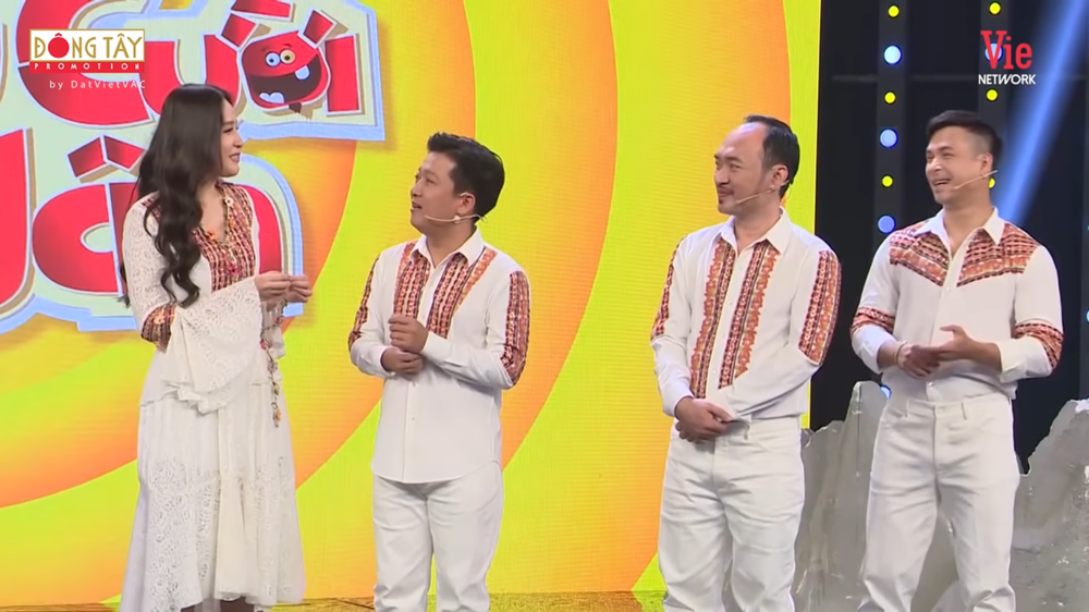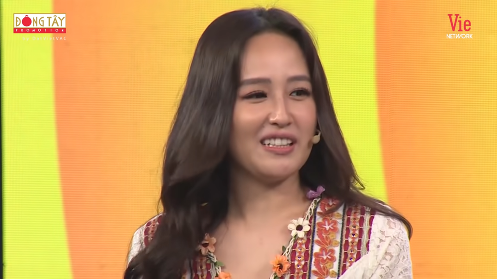 Cô nói: “Tại vì hồi bé người ta không biết tôi hay nói linh tinh mới cho tôi làm hoa hậu, chứ nếu biết tôi như thế chắc chỉ cho á hậu thôi". Nghe vậy, Trường Giang lên tiếng phản biện: “Em nói sao chứ mọi cuộc thi đều có lý do để chọn người chiến thắng".