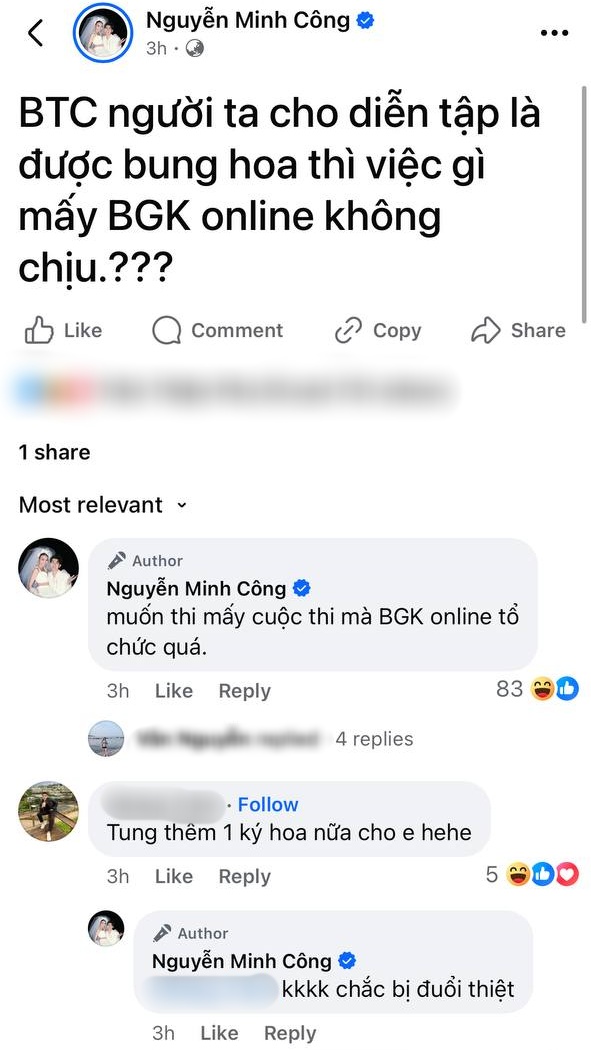 Dưới phần bình luận, không ít khán giả cũng bày tỏ sự đồng tình với Nguyễn Minh Công, đồng thời cho rằng những người công kích Kỳ Duyên "xả rác" trên sân khấu bán kết Miss Universe 2024 là quá vô lý và ác ý đối với nàng hậu. Đầu tiên, phần bung hoa của Kỳ Duyên không phải tùy ý biểu diễn mà đã có sự thông qua của BTC. Thứ hai, khán giả cho rằng công chúng đáng lẽ nên khen ngợi, động viên Kỳ Duyên khi cô đã hoàn thành tốt phần thi trang phục dân tộc, chứ không phải bới móc chi tiết nhỏ nhặt để chỉ trích người đẹp này. Đây được xem là phần thể hiện hiệu quả và ấn tượng nhất của Kỳ Duyên trong đêm bán kết vừa qua.
