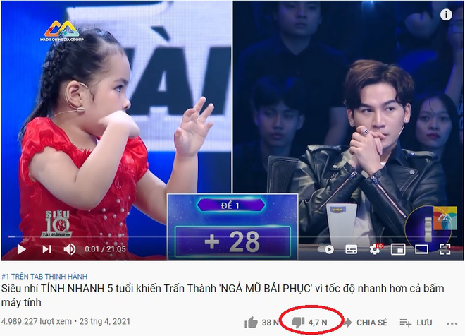 29/04/2021 15:03Màn tính nhẩm siêu nhanh của bé 5 tuổi khiến tất cả 'ngả mũ thán phục', nhưng số lượng 'dislike' lại gây tranh cãi
