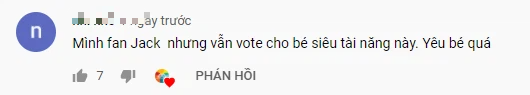 Một số cư dân mạng tỏ ra tức giận và cho rằng lượt dislike này là do cộng động fan của Jack (Đom Đóm) tạo ra vì phần thi của em bé đã giành mất vị trí top 1 trending của Jack.