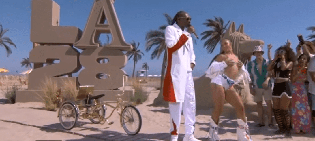 Nếu như ở "đầu cầu" Paris, mọi thứ đã chìm vào đêm tối thì ở Los Angeles vẫn đang là ban ngày nắng đẹp. Sau màn trình diễn của Billie Eilish với BIRDS OF A FEATHER, 2 "huyền thoại" của làng hip-hop xuất hiện: Dr.Dre và Snoop Dogg, thực sự đẩy bầu không khí lên một tầm cao mới. Có lẽ không cần phải nói thêm về sự nổi tiếng của 2 "tượng đài" làng hip-hop này.