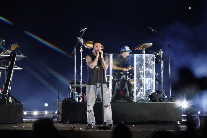 Không chỉ vậy, Adam Levine còn khiến khán giả có mặt la hét đến khản cổ khi có màn cởi áo khoe body "hết sẩy" trên sân khấu. Từng góp mặt trong danh sách những người đàn ông quyến rũ nhất thế giới, thế nên khoảnh khắc này của Adam Levine quả thật khiến fan chỉ biết "suy tim" vì quá đã mắt.