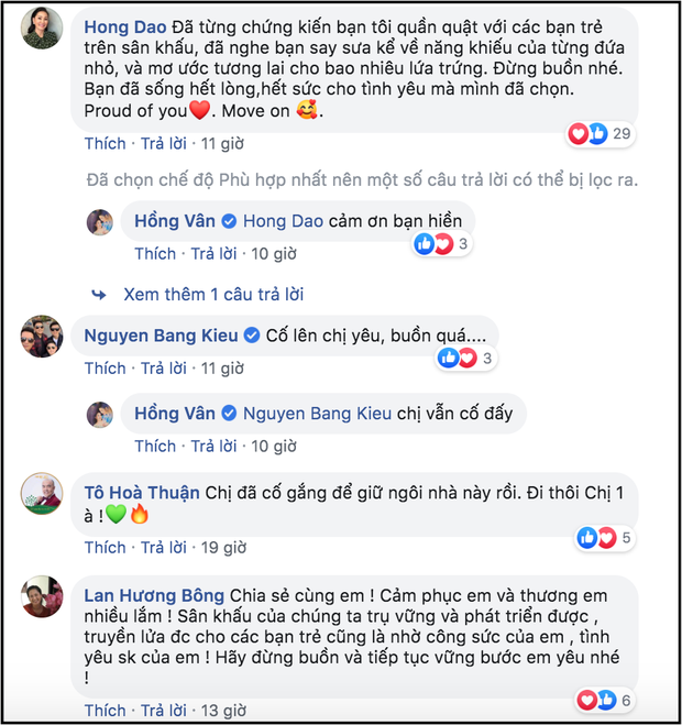 Ngay sau đêm diễn cuối cùng kết thúc, nhiều nghệ sĩ đã để lại những chia sẻ xúc động trên trang cá nhân, thể hiện nỗi xót xa khi phải chia tay SuperBowl. MC Đại Nghĩa, Ốc Thanh Vân, nghệ sĩ Hồng Đào, NSND Lan Hương… đều khẳng định NSND Hồng Vân đã rất tâm huyết với SuperBowl suốt 14 năm qua. Dù không thể vượt qua khó khăn để sân khấu phải dừng hoạt động nhưng với các nghệ sĩ, những kỷ niệm của NSND Hồng Vân cùng những diễn viên đã gắn bó với SuperBowl sẽ không bao giờ phai nhạt.