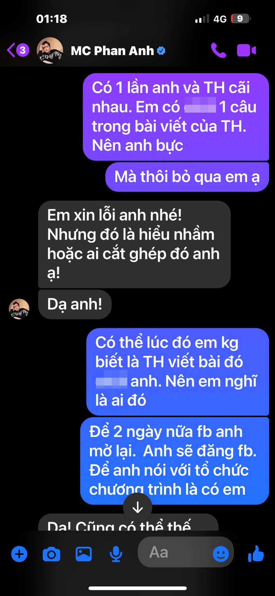Để sự việc không bị đẩy đi quá xa, mới đây, Duy Mạnh đã trực tiếp gửi lời đến Phan Anh trên trang cá nhân. Anh chia sẻ: "MC Phan Anh, anh rất áy náy và ngại với em trong show diễn vừa rồi. Vì nó không được như điều anh mong muốn. Thông cảm cho anh nhé".