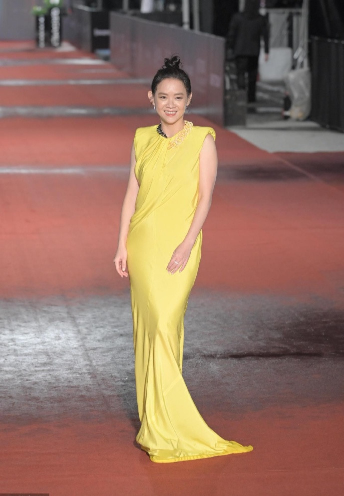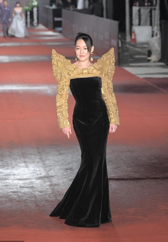 Diễn viên Tăng Bảo Nghi chọn váy vàng để nổi bật khi dạo bước thảm đỏ.