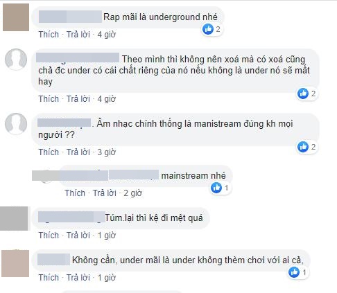 Ý kiến này của MC Trấn Thành sau đó đã được lan truyền rộng rãi trên mạng xã hội và đã có 2 luồng phản ứng trái ngược nhau. Một số người đồng tình "Rap Việt đã xoá nhoà được ranh giới giữa Underground và nhạc chính thống" nhưng số đông khác lại cho rằng "âm nhạc là không có ranh giới" đồng thời rap vẫn giữ cho mình chất underground riêng biệt.