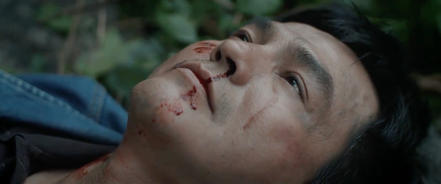 Trong rừng sâu, Khoản đã tỉnh lại sau một đêm nằm bất động nhưng hẳn chưa thể ngồi dậy vì trên người có nhiều vết thương.