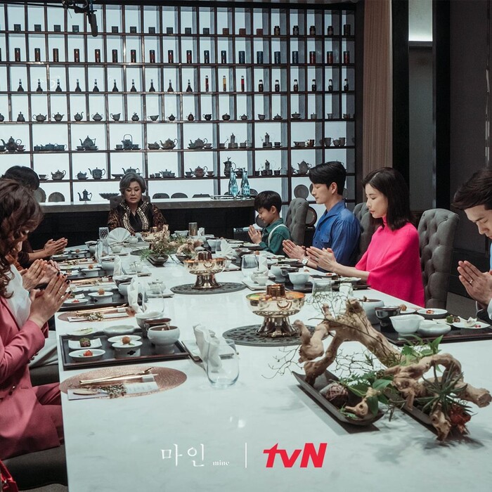 Giống như các bộ phim truyền hình makjang ăn khách khác, Mine khởi động bằng một bữa tiệc thịnh soạn, đòi hỏi một đội nhân viên chuẩn bị và chờ đợi trên một chiếc bàn gồm các thành viên gia đình khó tính, những người không thích nhau ngay cả trước khi món khai vị được phục vụ.
