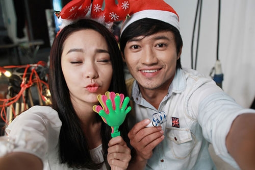 Minh Hằng và Quý Bình nghịch ngợm trên phim trường |