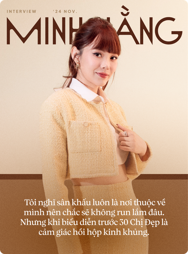Run nha, rất run luôn. Trước khi diễn, tôi nghĩ sân khấu luôn là nơi thuộc về mình nên chắc sẽ không run lắm đâu. Nhưng khi biểu diễn trước 30 Chị Đẹp là cảm giác hồi hộp kinh khủng. Ngay khi chọn bài hát mở màn tôi đã suy nghĩ rất nhiều vì trước đây mình cũng có kha khá bản hit nhưng bây giờ tôi không biết khán giả sẽ thích loại nhạc như thế nào. Ban đầu tôi dự định remix các ca khúc đó, nhưng sau khi suy đi nghĩ lại tôi cảm thấy bài hát mở màn nên là sự cộng hưởng hành trình của mình là ca sĩ - diễn viên. Thế là tôi quyết định chọn bài Trèo Cao Ngã Đau trong phim Chị Chị Em Em vì vừa phù hợp với mong muốn, vừa mang thông điệp khá hay.