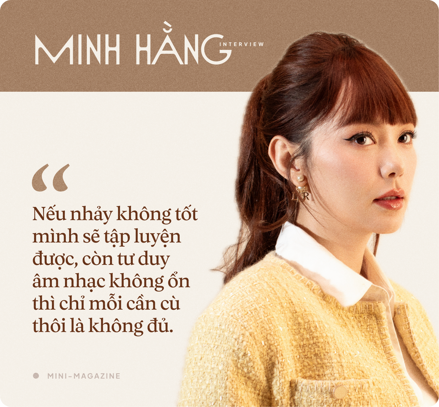 Ngoài là một diễn viên, nhà sản xuất thì tôi đã từng kinh qua nhiều nhóm nhạc, nhưng để tự tin nói rằng mình giỏi nhất ở mảng âm nhạc thì chưa. Thế nên tôi cũng muốn vào chương trình để học hỏi là chủ yếu chứ không phải khẳng định bản thân mình là ai ở vai trò này. Tinh thần mà Minh Hằng đến với Chị Đẹp là học hỏi vì tôi hiểu được rằng bản thân còn nhiều thứ chưa hoàn thiện.