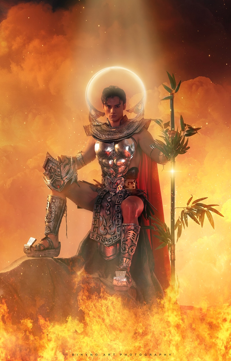 Qua bộ ảnh diện trang phục dân tộc, Minh Khắc muốn thể hiện hình ảnh Thánh Gióng dũng mãnh, mang sức mạnh quật cường với nguồn sức mạnh từ thiên nhiên để hình tượng hóa vị anh hùng đã xả thân vì nước, vì dân trong truyền thuyết.