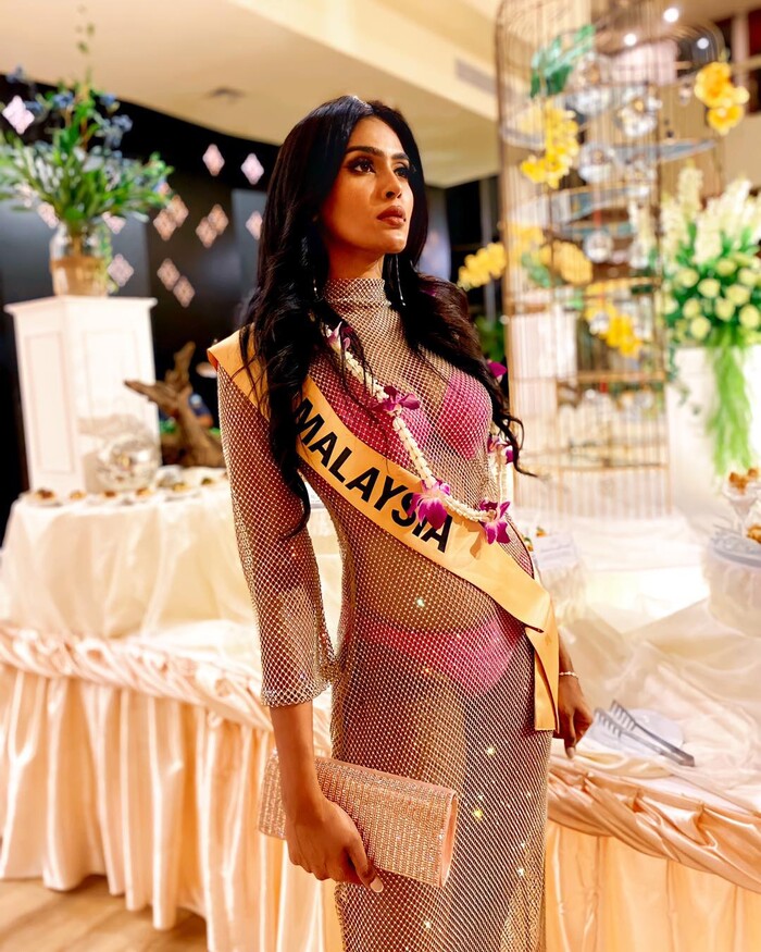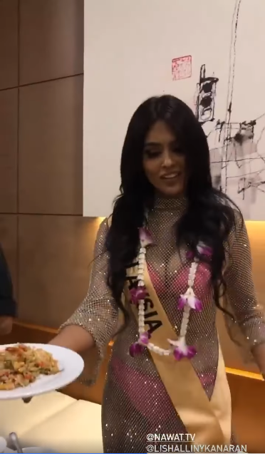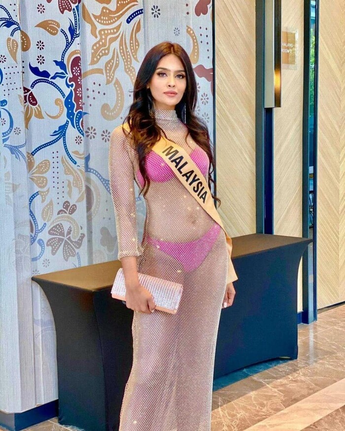 Chiếm spotlight nhất buổi tiệc này có lẽ là đại diện đến từ Malaysia, Lishalliny Kanaran khi cô chỉ mặc một chiếc váy dài xuyên thấu như chiếc lưới cực kì mỏng và hoàn toàn để lộ bộ đồ lót màu hồng rực rỡ bên trong.