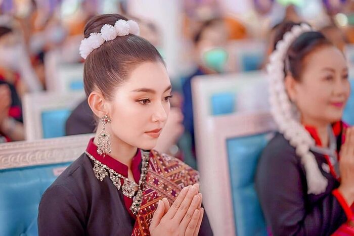 Thùy Tiên đang có lịch trình dày đặc tại các sự kiện tại Thái Lan. Gần đây, cô thường xuất hiện với trang phục truyền thống của xứ Chùa Vàng. Lối trang điểm đặc trưng của phụ nữ Thái với điểm nhấn là lông mày sắc cũng được cô áp dụng thường xuyên.