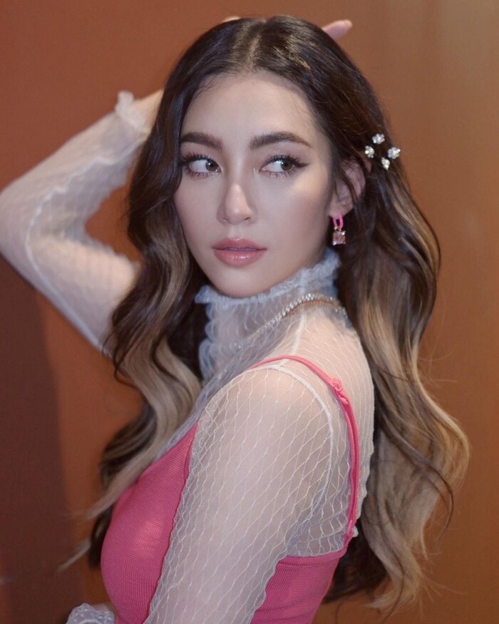 Layout với lông mày đen nổi bật là hình ảnh quen thuộc của Thùy Tiên, đây cũng là cách trang điểm đặc trưng của phụ nữ Thái Lan.