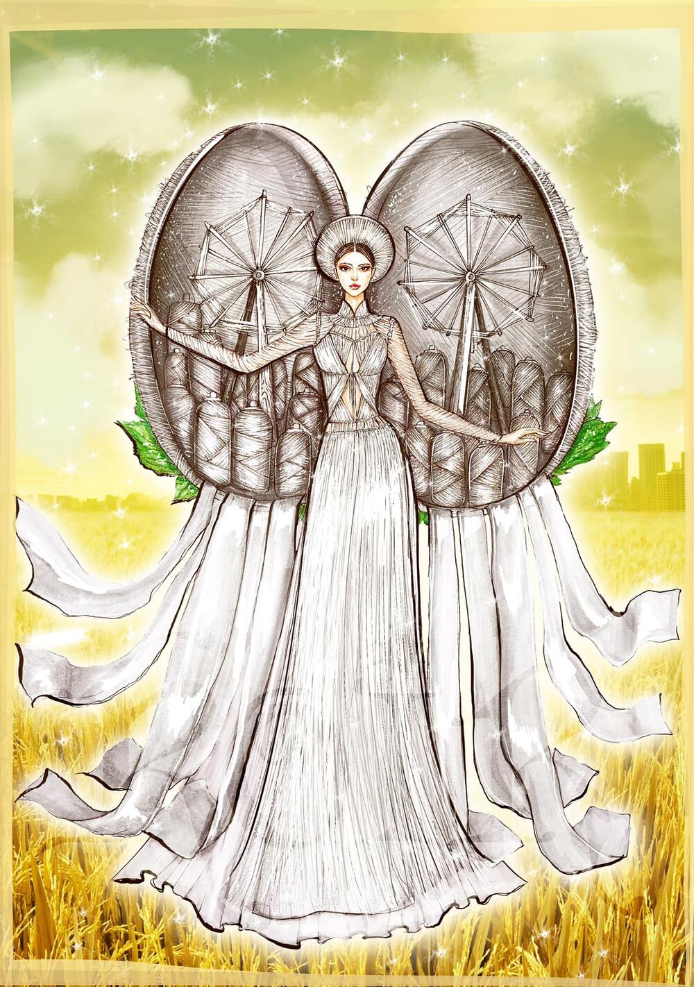 Cô mang đến bộ trang phục dân tộc nói về thông điệp phòng chống Covid-19 tại quê hương mình.