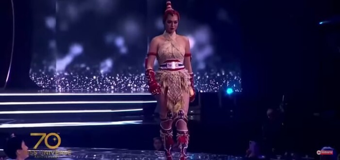 Sang đến phần thi National Costume, mọi chuyện có vẻ khá khẩm hơn khi xét ra, trang phục có phần phù hợp hơn với người đẹp Thái Lan.