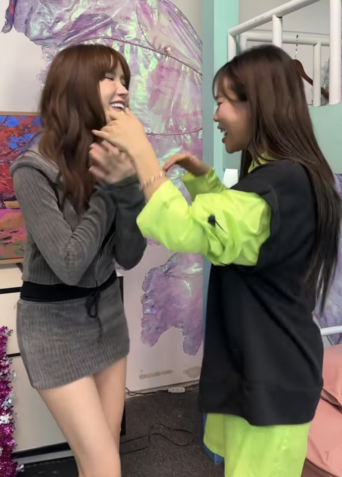 "Bây giờ đang có tin đồn xích mích trên mạng đó nên em mới quay chị nè", Misthy nói với Thiều Bảo Trâm.