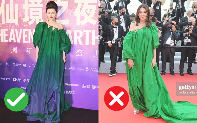08/07/2021 20:48Một chiếc váy 2 số phận: Phạm Băng Băng đẳng cấp nữ hoàng, khách mời Cannes diện như 'nùi giẻ' nhăn nhúm