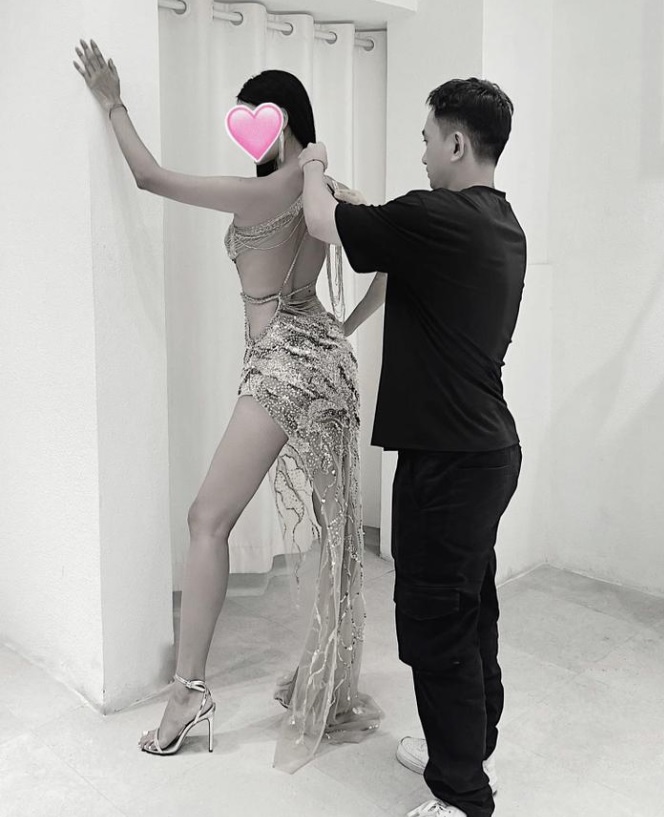 Sáng 6/8, nhà thiết kế Lê Ngọc Lâm chia sẻ hình ảnh thử đồ cho một người đẹp. Anh dùng biểu tượng che mặt cô gái, song đăng dòng trạng thái: "Một cô gái thật hot sẽ quay lại đấu trường nhan sắc hot nhất năm nay. Thật hào hứng".