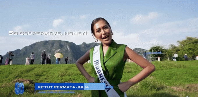 Đáng chú ý, dàn người đẹp lại chiếm spotlight vì màn bắn tiếng Việt cực kỳ chất lượng. Trong clip, các thí sinh đến từ các quốc gia trên thế giới gây sốt khi liên tục nói những từ ngữ trend trên mạng xã hội như: "Đỉnh nóc", "Kịch trần", "Bay phấp phới", "Hết nước chấm", "Khó chịu vô cùng", "Quá là hợp tác rồi"... Đặc biệt Miss Cosmo Thái Lan còn gây chấn động khi xuất hiện cuối đoạn video chốt hạ bằng câu nói gần gũi và phát âm cực chuẩn: "Nắng quá mấy bà ơi".