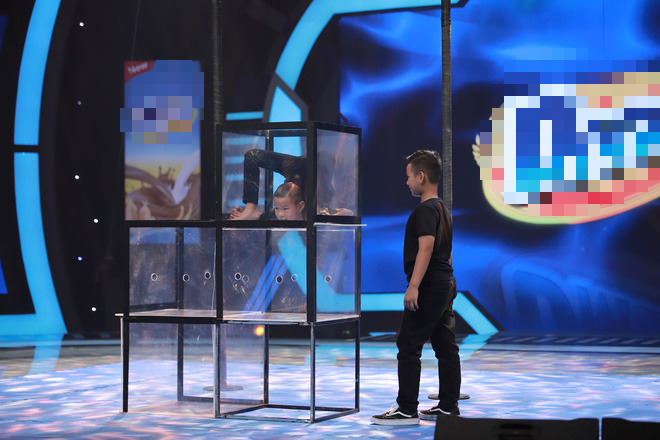 Tiếp đó, Minh Quang còn thực hiện thử thách uốn dẻo cơ thể để chui vào một chiếc hộp rồi chui ra ngoài chỉ trong 42 giây.