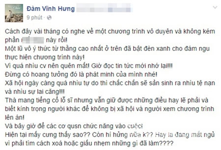 Mr Đàm bày tỏ sự bức xúc của mình trên facebook về chương trình 'Những kẻ lắm lời'. Thái độ thẳng thắn của Mr Đàm được nhiều người ủng hộ.