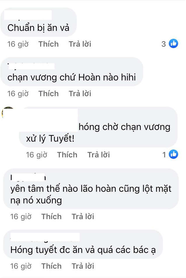 Trên mạng xã hội, khán giả lại vô cùng hả hê khi Tuyết bị chồng uy hiếp. Tuyết ngoài mặt thì tỏ vẻ là bạn thân, lo lắng cho Lệ nhưng sau lưng cô lại chơi xấu Lệ hết lần này đến lần khác. Dân mạng chờ đợi ngày Tuyết bị Hoàn lột trần bộ mặt giả tạo mà cô đã che giấu suốt 10 năm qua.