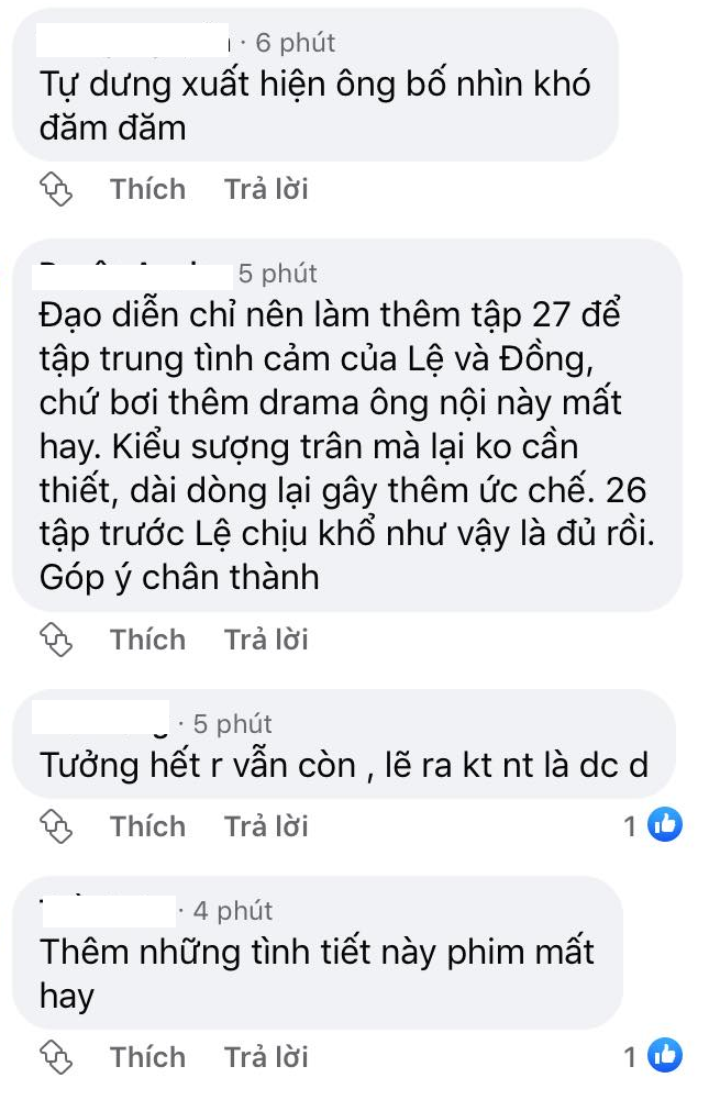 Cuối tập 26, bé Ngân đã hỏi ông nội vì sao lại không thích Lệ, ông trả lời rằng tất cả đều vì cháu gái bởi 'mấy đời bánh đúc có xương'. Phải chẳng dù hiện tại Lệ có đối xử tốt với Ngân như thế nào thì bố Đồng vẫn cho rằng 'mấy đời dì ghẻ lại thương con chồng'.