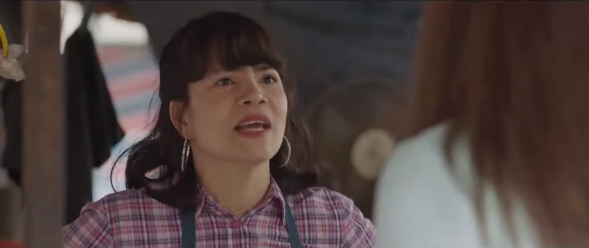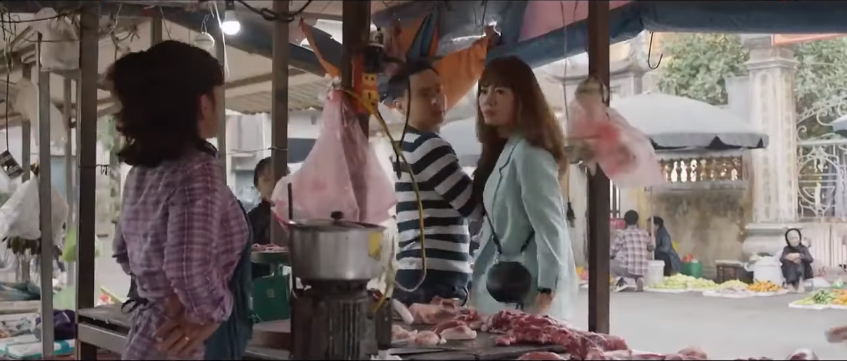 Quá tức giận, Lệ định giờ tay tát bà chủ sạp thịt thì Việt kịp thời ngăn cản. Lệ nói với Việt: 'Cậu thấy không? Bán hàng đã điêu toa lại còn già mồm à. Để xem có dám già mồm nữa hay không?'