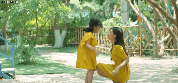 Trong cảnh phim của hai mẹ con, Thủy và bé Ngân đều mặc bộ váy màu vàng rực rỡ, tươi tắn. Đây là lẽ là lần gặp mặt đầu tiên của hai mẹ con sau khi Thủy bỏ nhà đi.