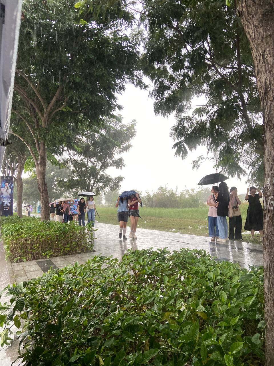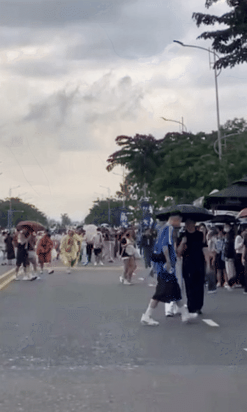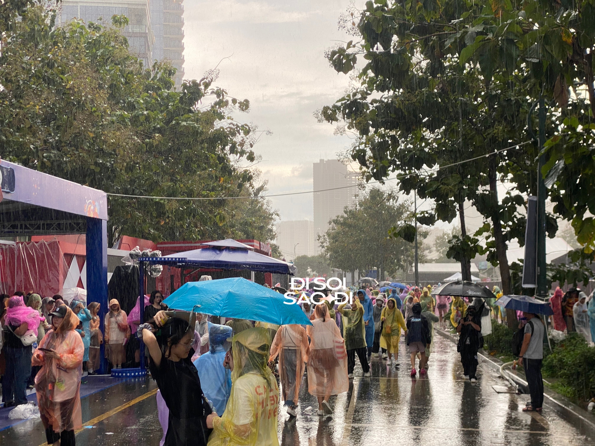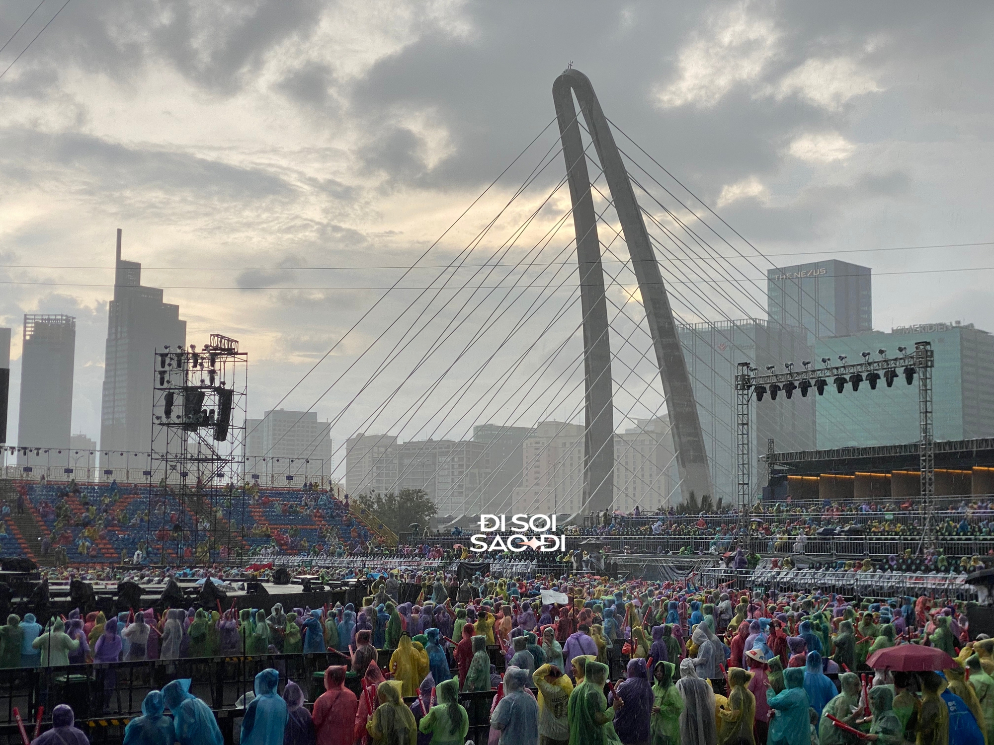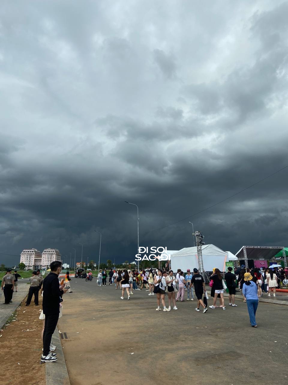 16 giờ - bầu trời xám xịt báo hiệu thời tiết xấu: Sau hơn nửa ngày trời nắng to, thì ngay lúc này - lúc 16 giờ tại TP.HCM, bầu trời đang đổ màu xám xịt. Với tình hình này, người hâm mộ không khỏi lo lắng trời sẽ đổ mưa lớn. BTC hai show cũng bắt kịp vấn đề, nhanh chóng phát áo mưa cho khán giả tham dự.