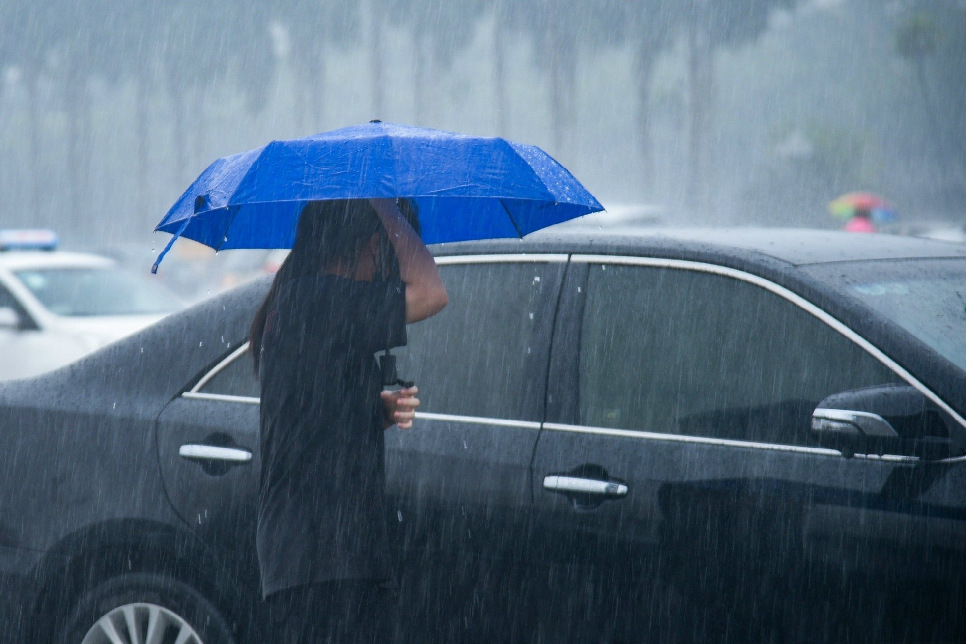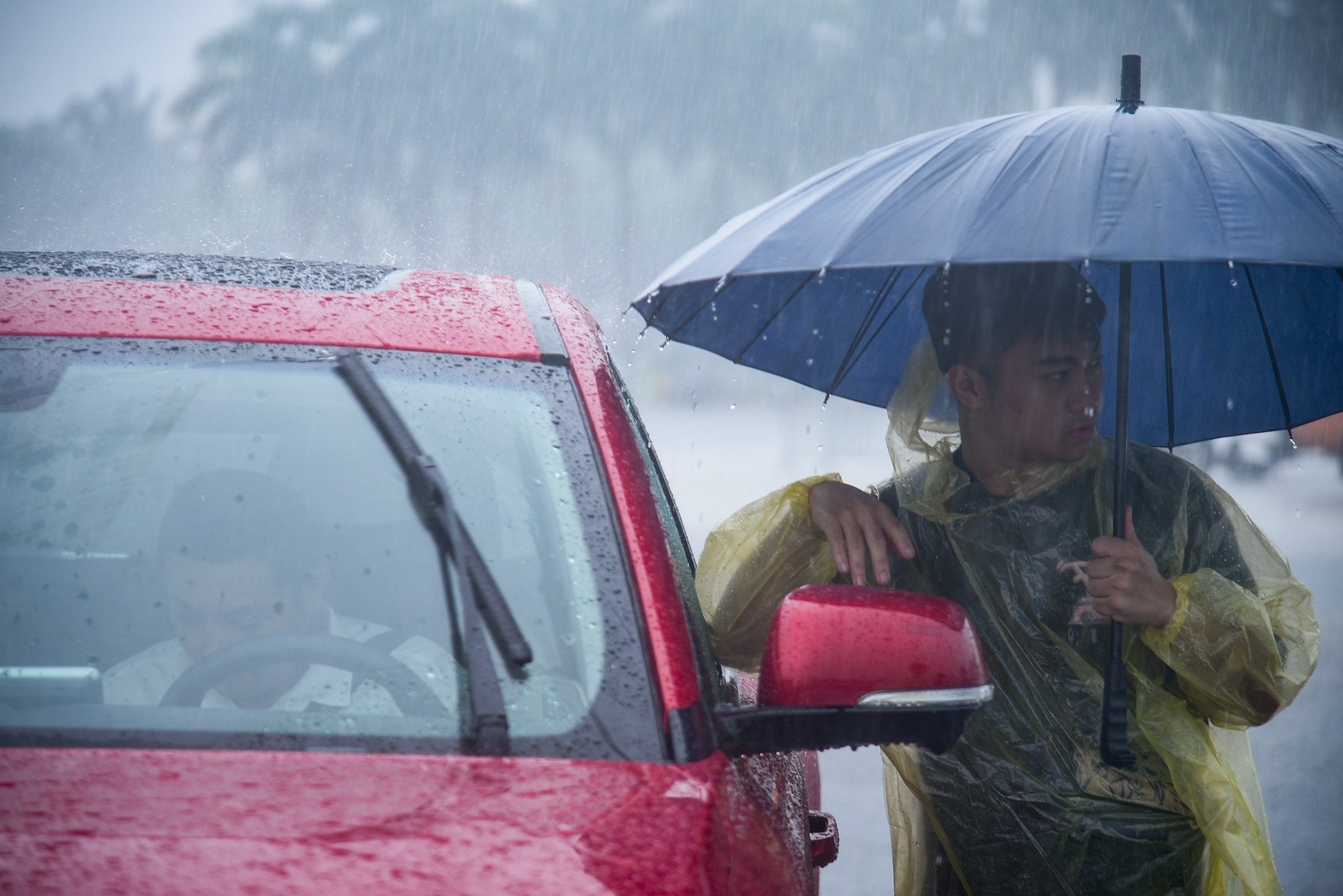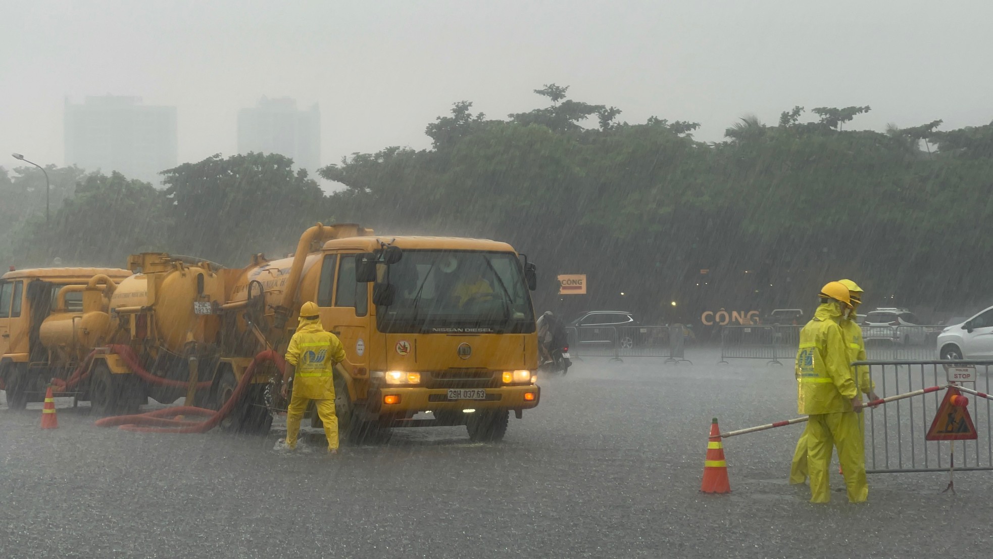 Cơn mưa lớn bất chợt đổ xuống vào khoảng 11h trưa 30/7 gây ngập cục bộ khu vực đường Lê Quang Đạo, trước cổng sân vận động Mỹ Đình, Hà Nội.