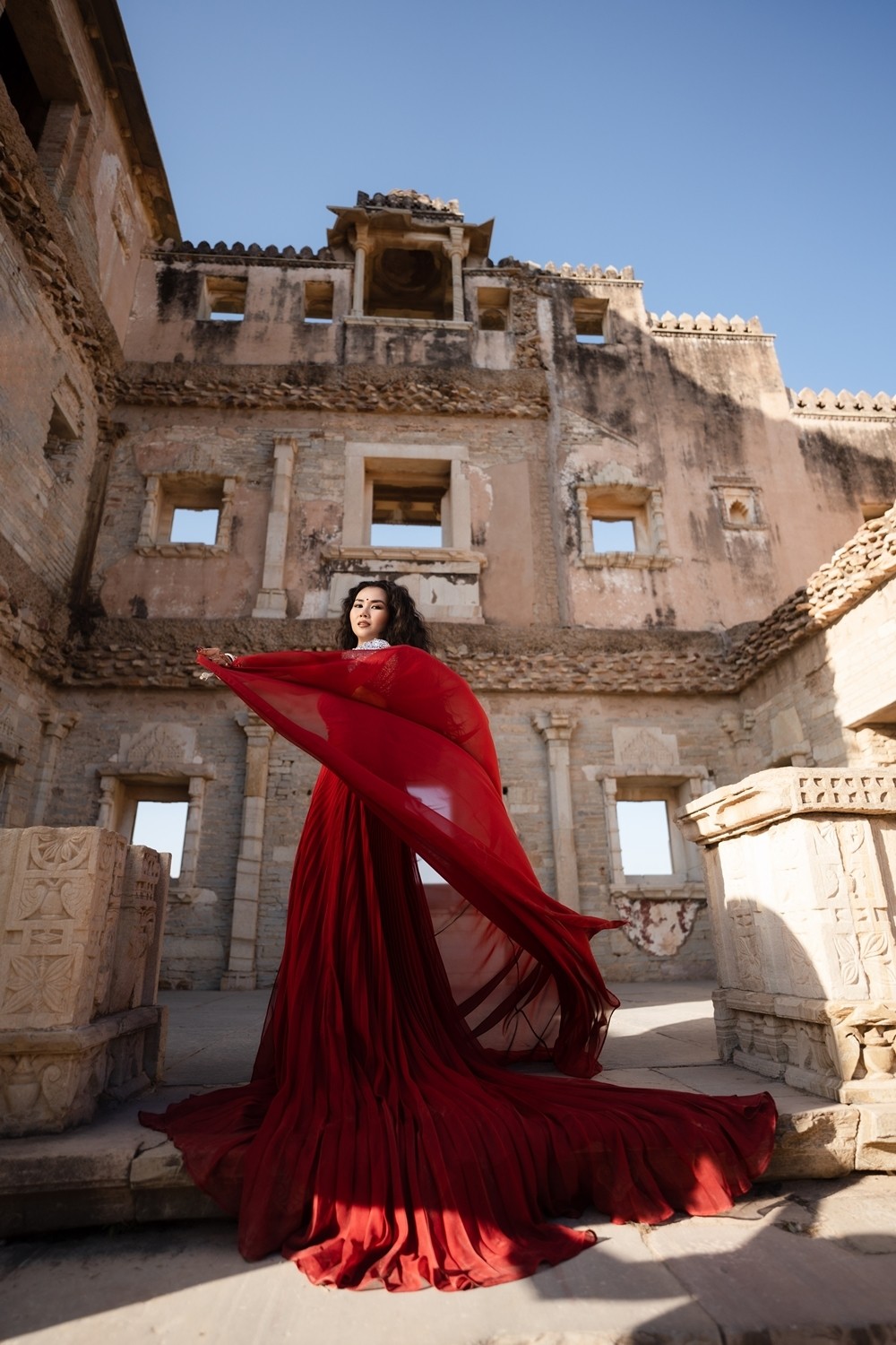 Đạo diễn Tùng Phan cũng chuộng những ống kính góc rộng để bắt trọn khung cảnh nước Ấn, đặc biệt là vùng Rajasthan với sa mạc trải dài. Nhiều cảnh quay được sắp đặt kỳ công, gợi nhớ của những tác phẩm điện ảnh Bollywood. Trong MV, Võ Hạ Trâm cũng thử sức bằng cách thể hiện các điệu nhảy đặc trưng cùng vũ công xứ Bollywood, liên tục thay nhiều trang phục, khoe đường eo thon gọn, săn chắc.