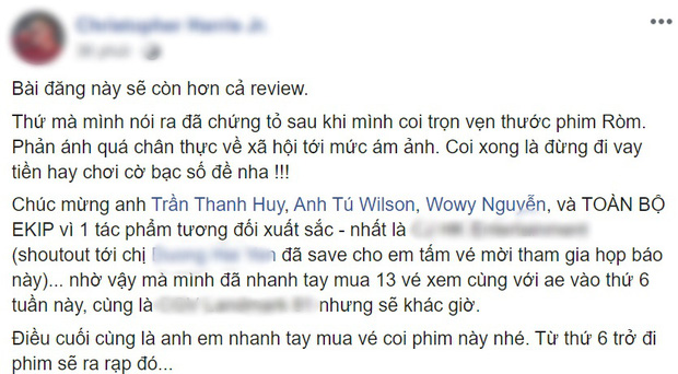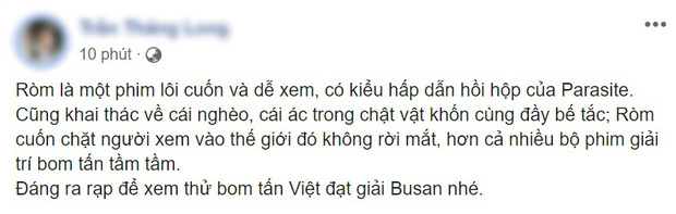 Sau bao sóng gió, từ việc bị kiểm duyệt, cặt gọt đến hoãn chiếu vì dịch bệnh, cuối cùng buổi họp báo công chiếu của Ròm cũng diễn ra một cách suôn sẻ. Ngoài loạt sao đình đám có mặt tại sự kiện, suất chiếu đặc biệt đầu tiên còn có sự góp mặt của một số khán giả may mắn và ngay lập tức, họ đã đăng tải loạt review toàn những lời khen có cánh cho Ròm.