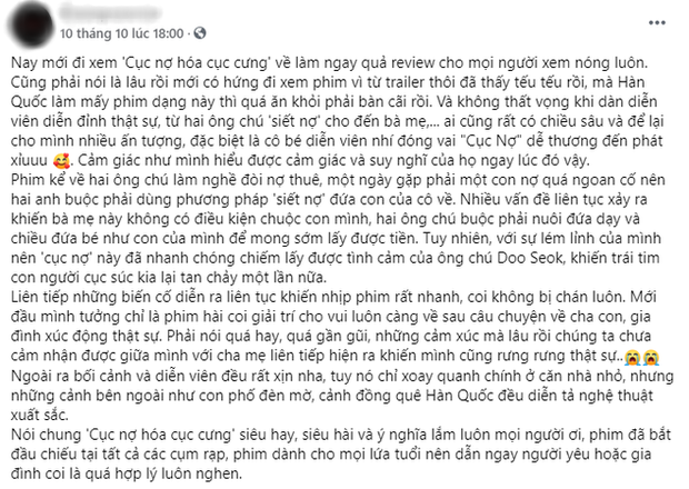 Cục Nợ Hoá Cục Cưng cũng đang khiến MXH Việt xôn xao. Đa phần khán giả đồng tình rằng phim thành công lấy nước mắt khán giả qua những tình tiết hài hước, cảm động đan xen.