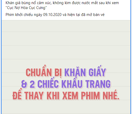 13/10/2020 22:00MXH ngập nước mắt vì Cục Nợ Hoá Cục Cưng: Khuyên khán giả mang 2 khẩu trang, chị em đừng chuốt masscara kẻo ra rạp biến thành... gấu trúc!