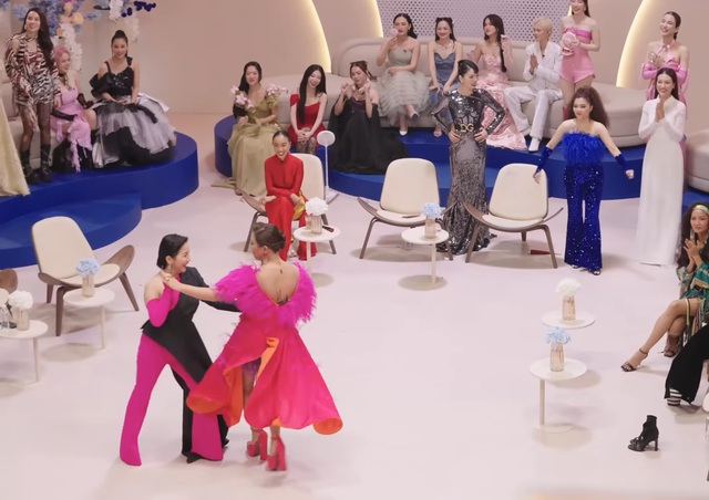 Cụ thể, sau khi Trang Pháp trình diễn xong, các nữ nghệ sĩ thi nhau bắt chước động tác vũ đạo khó của cô và kêu Mỹ Linh làm cùng. Mỹ Linh ban đầu e ngại nhưng bị Lệ Quyên khích "Em mặc đầm thôi chứ mặc quần như chị em cũng thử ngay", nữ diva lập tức bắt chước Trang Pháp thực hiện vũ đạo. Nhưng vì không chuyên nên cô ngã ra sàn, khiến ai cũng bật cười.