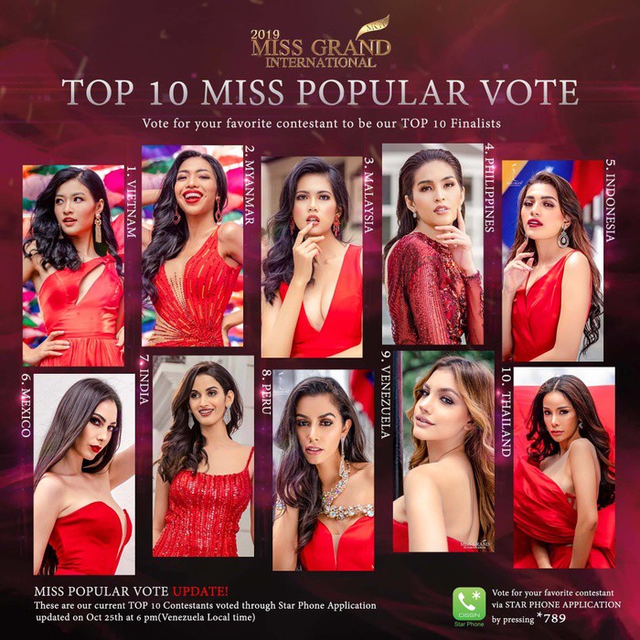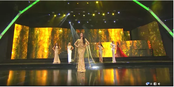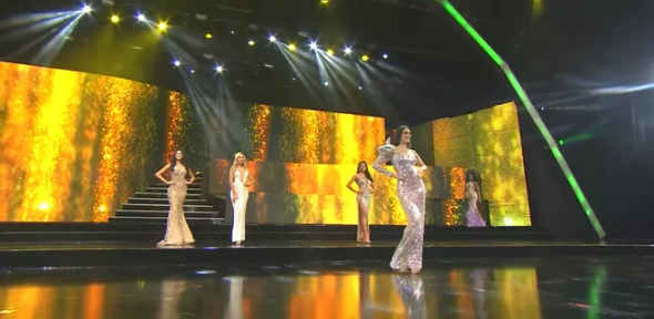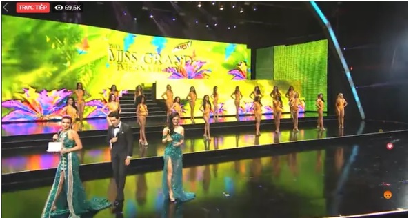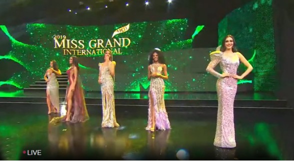 2 MC công bố Top 5 người đẹp xuất sắc nhất của Hoa hậu Hòa bình Quốc tế 2019 gồm: Mexico, Panama, Venezuela, Thái Lan và Brazil. Như vậy, Kiều Loan đã chính thức dừng chân ở Top 10.