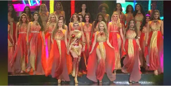 Đêm chung kết mở màn bằng phần Opening Dance đẹp mắt. Các người đẹp cùng mặc đầm lộng lẫy, tự hào hô vang tên quốc gia mình.