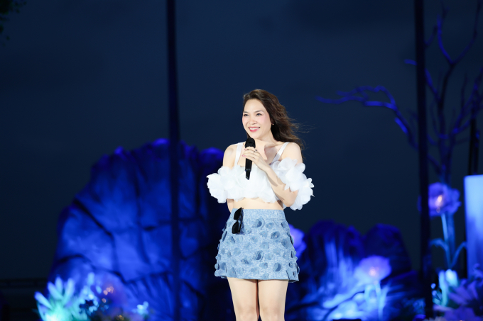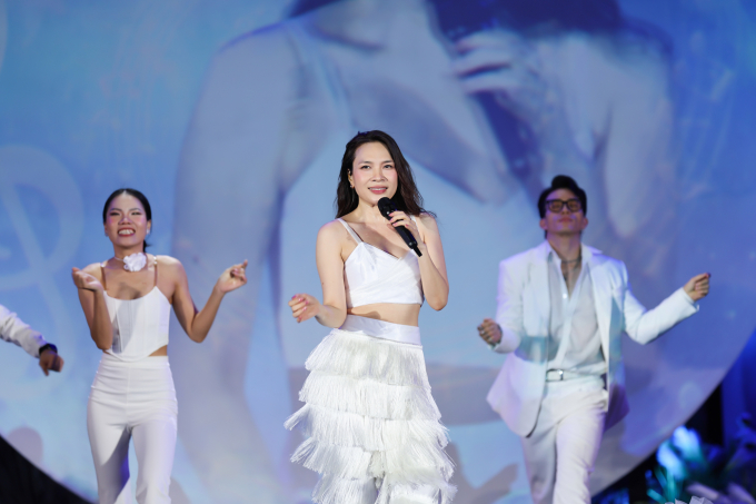 Mỹ Tâm thay đổi nhiều trang phục, xuất hiện xinh đẹp với dáng vẻ mặn mà, căng tràn sức sống. Trong bộ trang phục khoe eo thon nhỏ xíu, Mỹ Tâm chiếm trọn spotlight từ khán giả.