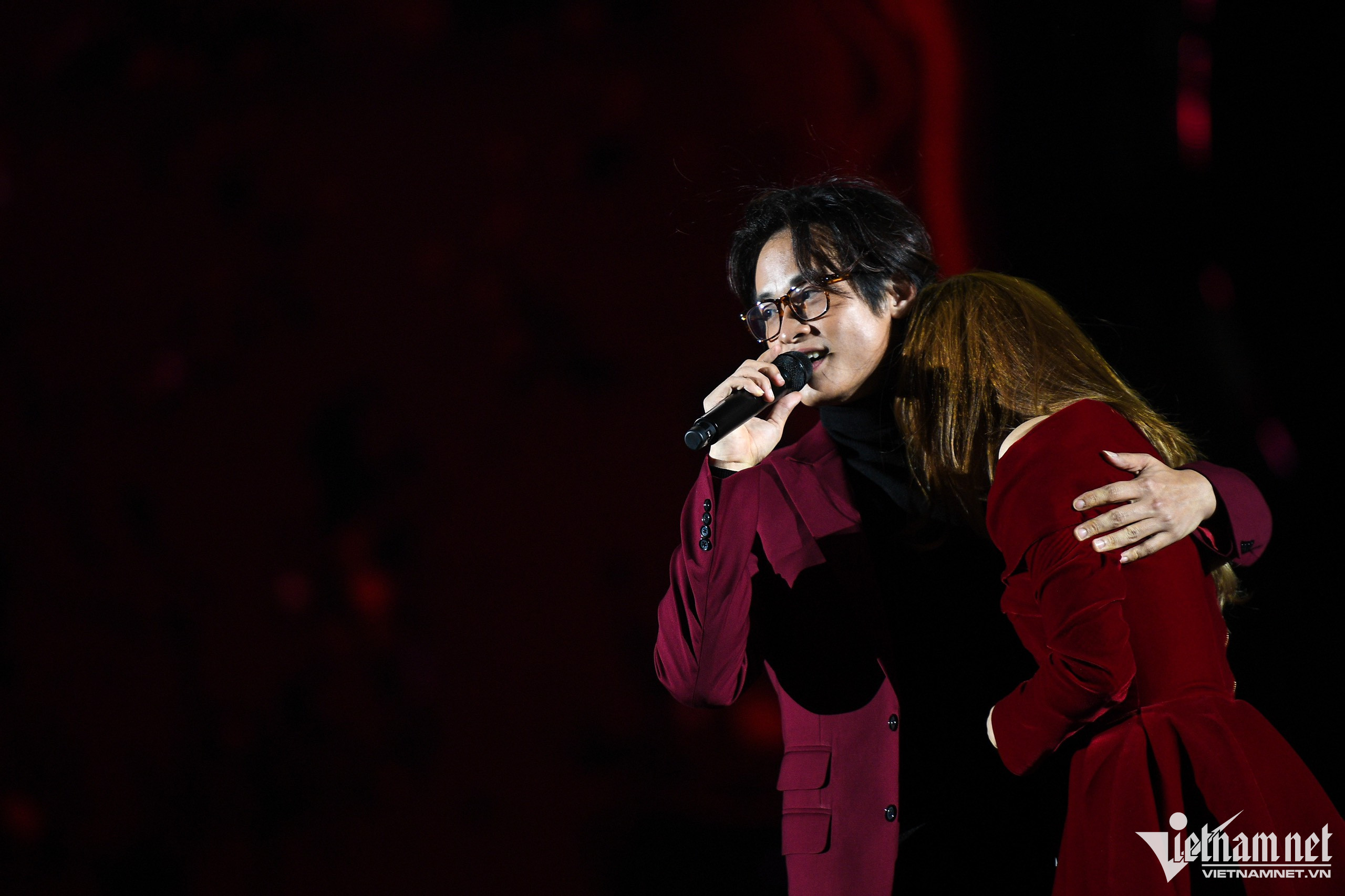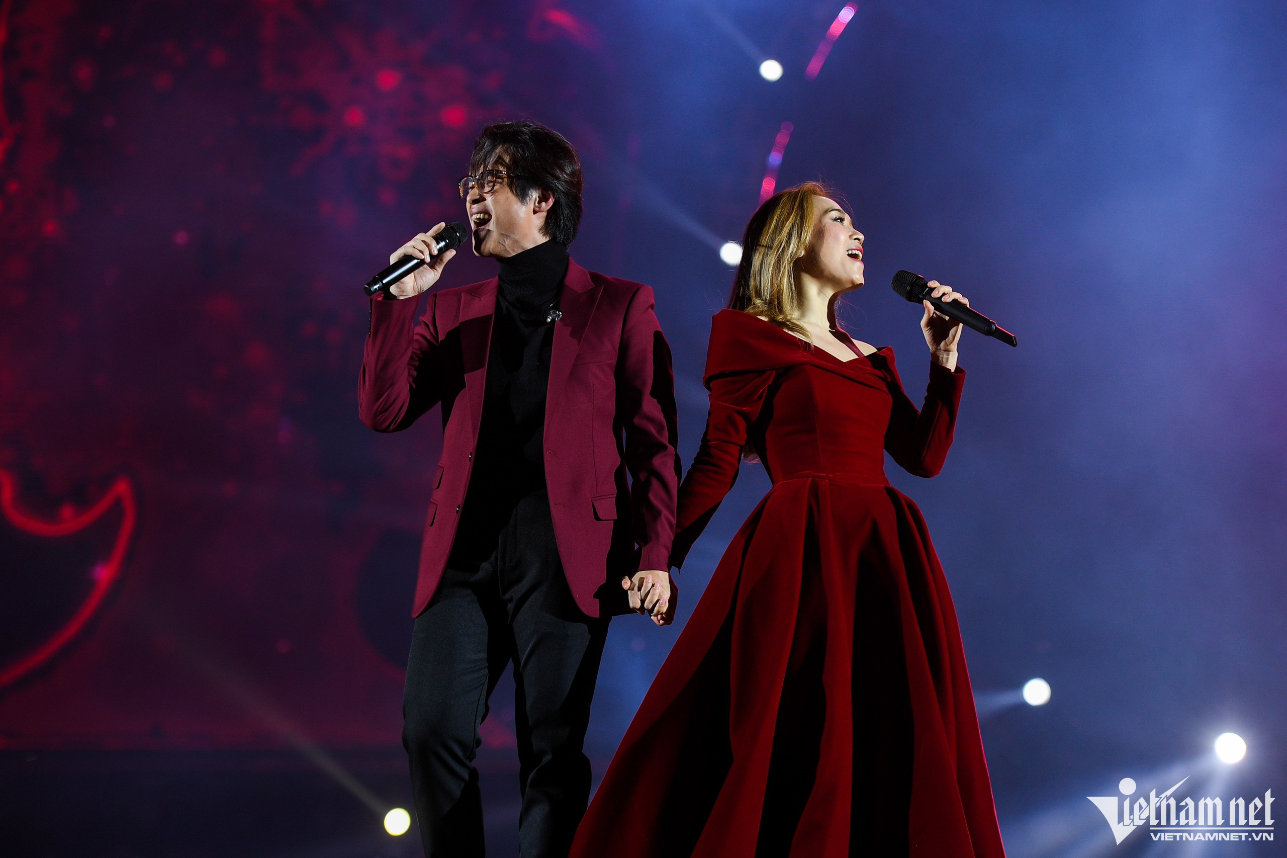 Mỹ Tâm và Hà Anh Tuấn đỏ mặt thẹn thùng khi khán giả phía dưới liên tục hét "hôn đi". Trước đó hai ca sĩ có màn song ca bài "Rất vui được gặp nhau" trong live show Tri âm trên SVĐ Mỹ Đình, Hà Nội.
