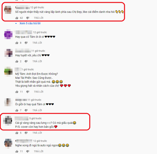 "Chị Tâm có nút vàng là chuyện bình thường, có gì đâu mà ngạc nhiên. Chị có lâu rồi mà không khoe thôi", "Chẳng ai lạ đời như chị, người ta chỉ giấu vì lượng theo dõi thấp, còn chị nút vàng luôn mà không thèm khoe luôn", "Mỹ Tâm ở đẳng cấp không cần khoe rồi", "Chị lúc nào cũng kín đáo chứ không khoe khoang, yêu chị lắm"... là bình luận của một số dân mạng.