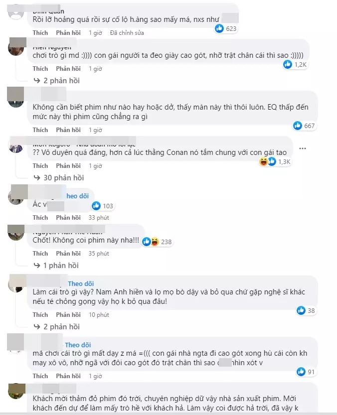 "Không cần biết phim như nào hay hoặc dở, thấy màn này thì thôi luôn. EQ thấp đến mức này thì phim cũng chẳng ra gì", "Vô duyên quá đáng", "Khách mời thảm đỏ phim đó trời, chuyên nghiệp dữ vậy nhà sản xuất phim. Mời khách đến dự để làm mấy trò hề với khách hả", "Con gái người ta đeo giày cao gót, nhỡ trật chân cái thì sao", "Chốt! Không coi phim này nha"...