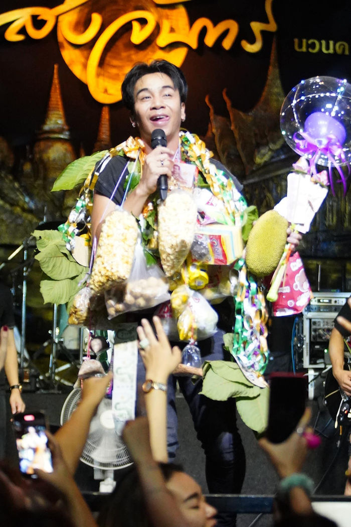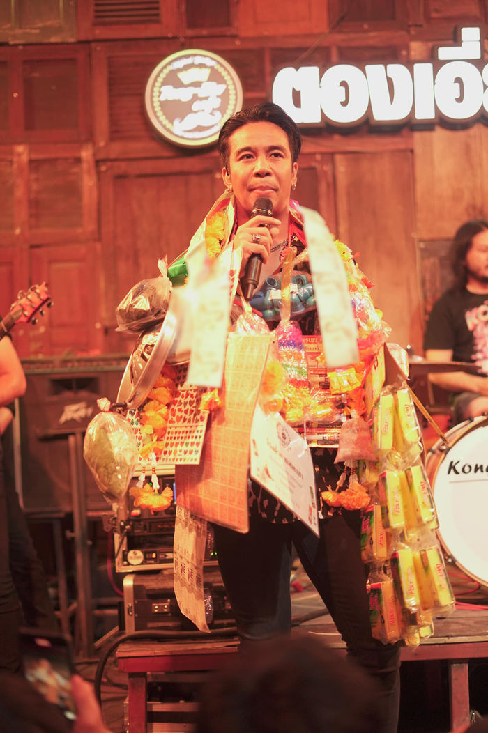 Mới đây, MXH nhiều nước Châu Á và cả Việt Nam rầm rộ chia sẻ loạt ảnh ghi lại khoảnh khắc để đời của Kong Huayrai - nam ca sĩ người Thái Lan. Theo báo chí Thái Lan, nam ca sĩ 35 tuổi thường xuất hiện ở các sân khẩu tỉnh lẻ và nhận được rất nhiều sự yêu mến của khán giả. Người hâm mộ ở các tỉnh khác nhau trên khắp Thái Lan đã dành tặng cho anh chàng những món quà 'cây nhà lá vườn' không thể độc đáo hơn.